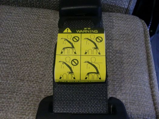 シートベルト装着時は肩ベルト取り付け部、腰ベルト取り付け部、バックルを確実に取り付けて下さい。