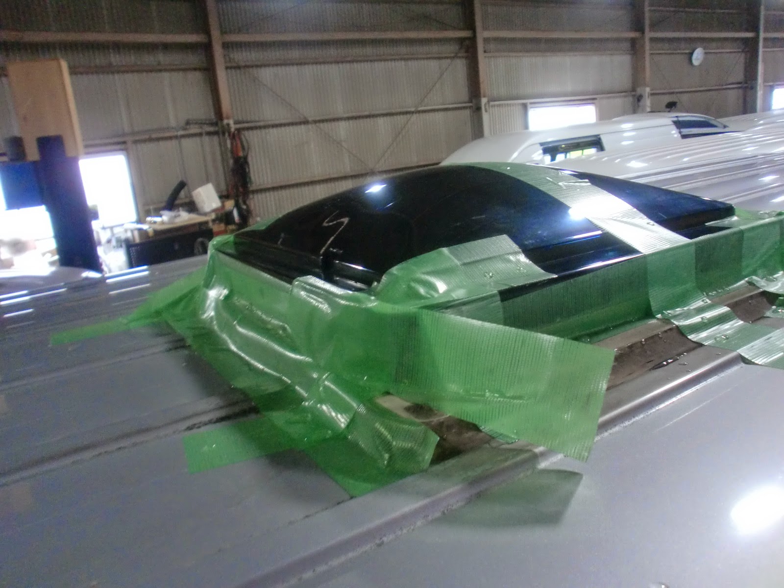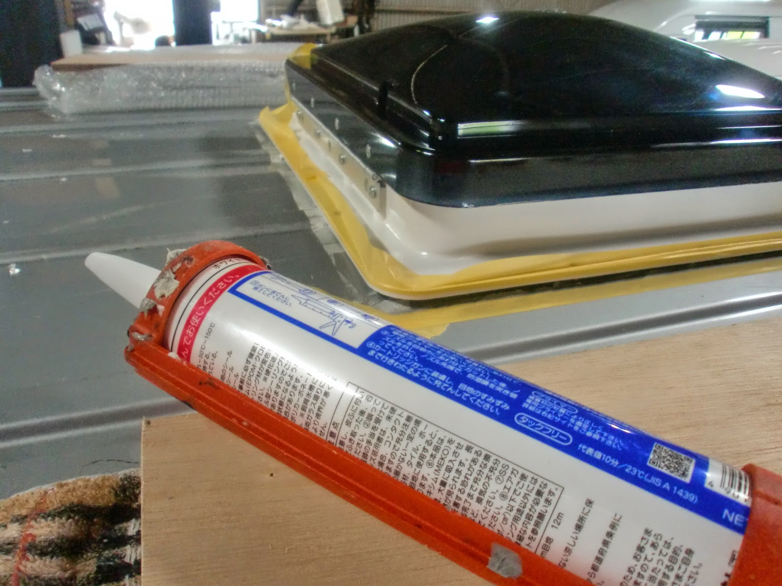 ベンチレーターを乗せたらビス止めし、コーキング(防水処理)を施工していきます。
