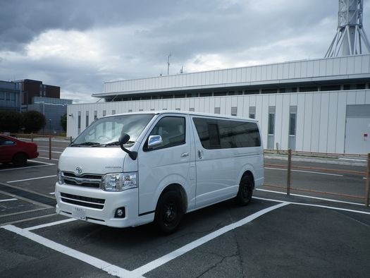 本日はハイエース標準ボディのスーパーGLベース「ファミリーワゴンS」を大阪運輸支局にて新規検査・登録