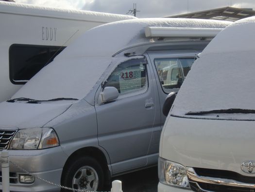 今朝出勤すると屋外の展示車両に薄っすら雪が積もっていました。