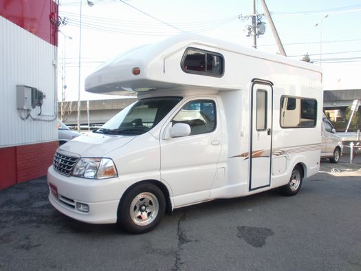 装備:LPガスヒーター、カセットトイレ、マックスファンベンチレーター、冷蔵庫(90リットル)、バックカメラ