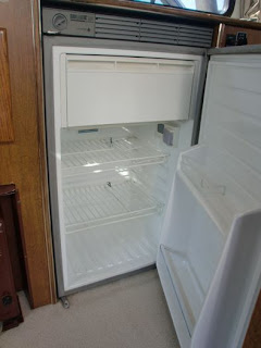 エントランスドアから入ると正面に冷蔵庫とLPガスヒーター