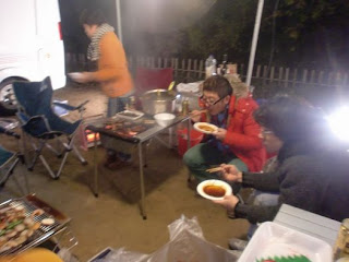 寒さが増した夜、まずは食べて温まります。豚汁とB.B.Q.!