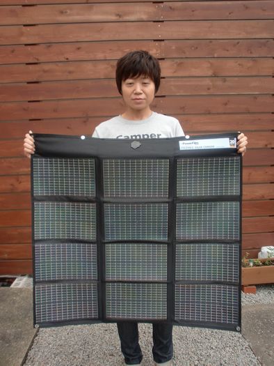 持ち出せる電源システム「キャリーパワー」でも使用している「パワーフィルム 折りたたみソーラー」です。