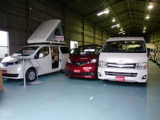 新しく生まれ変わった「ファミリーワゴンSS」、開発中の「ファミリーワゴン」マイナーチェンジ1号車どちらもキャンピングカープラザ大阪にて展示中。