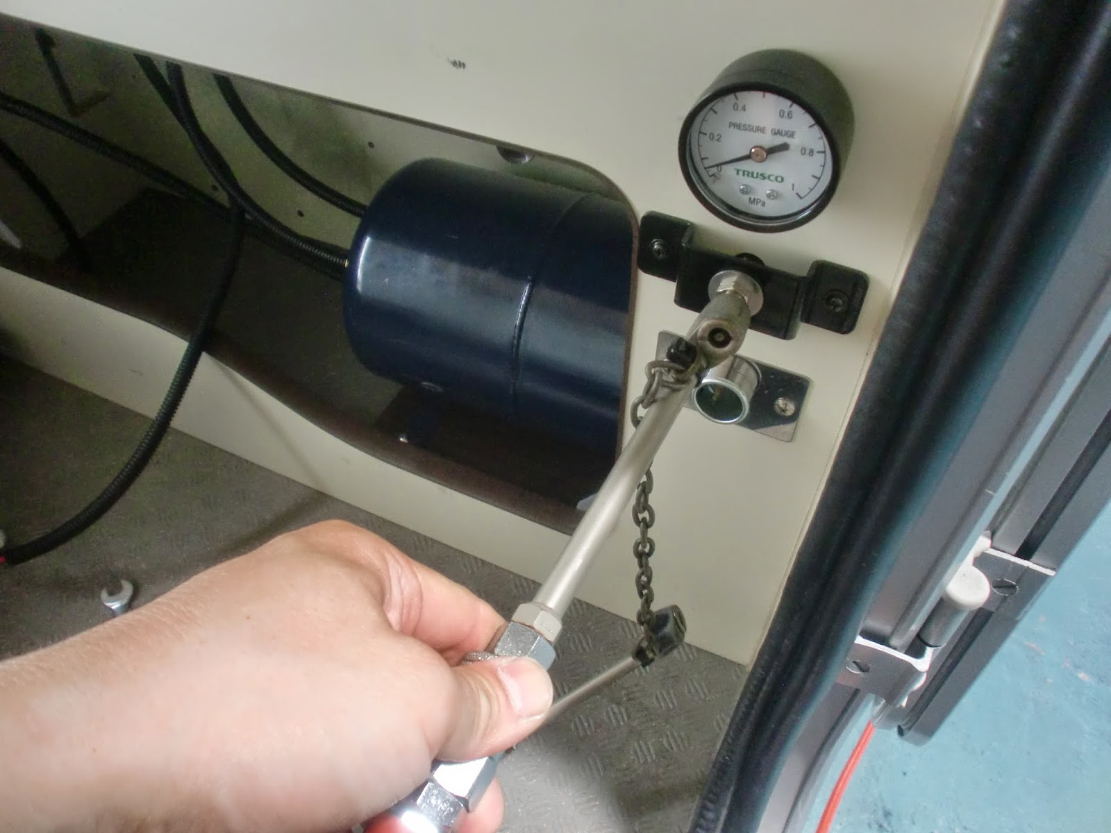 このエアサスはコンプレッサーで自動ではなく、手動で入れていきます。