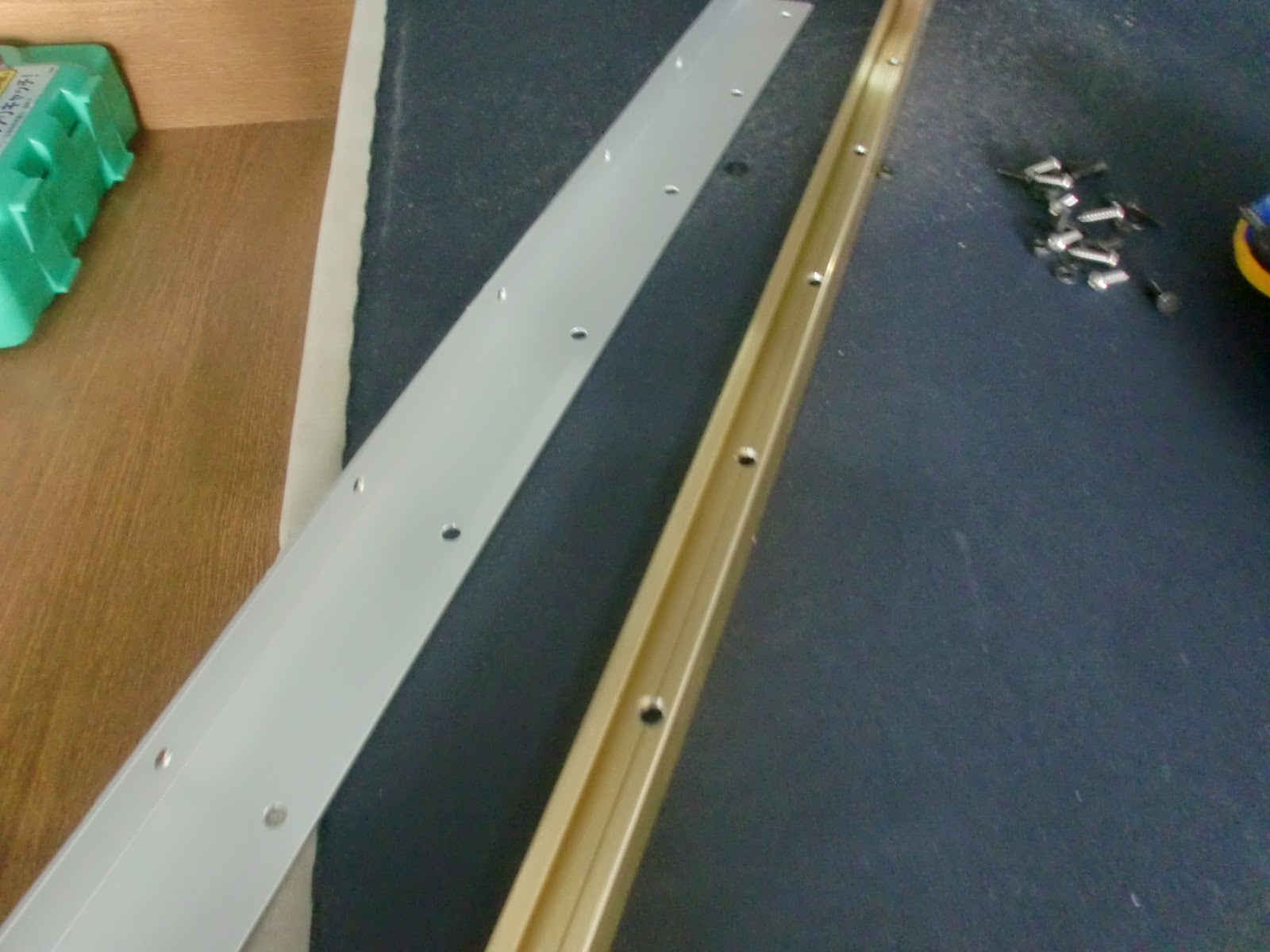 先ほどの金色のレールと、それを取り付けするアルミのアングルを用意し固定出来る様に