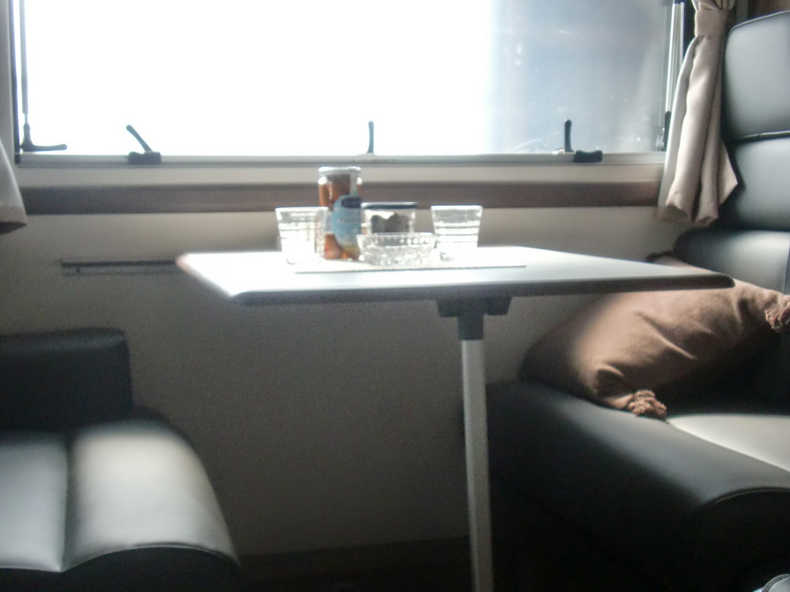 本来、テーブルを取り付けるとこんな風に座席に座り、食事等をして頂く事が出来ます。