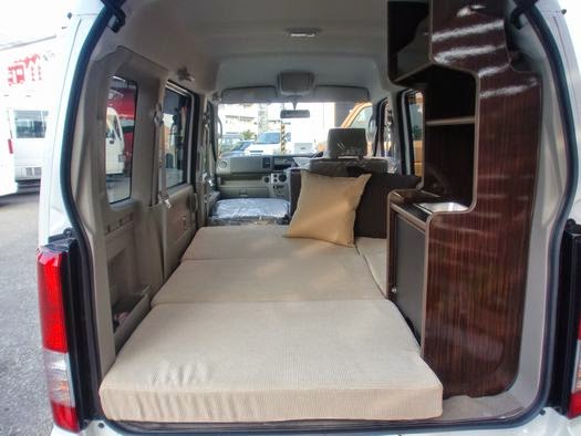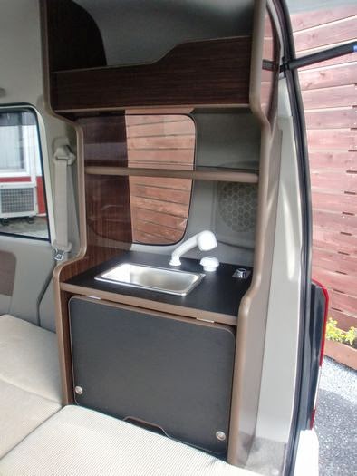 右側後方ギャレー(シャワー蛇口、給排水タンク各10リットル)、フラットベッドマット