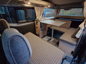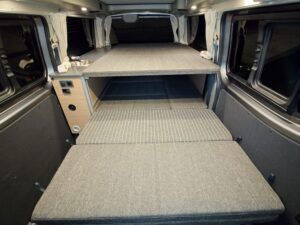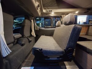 就寝はダイネット展開したベッド、2段ベッド、エレベーティングルーフ内のベッドを合わせて6人就寝可能