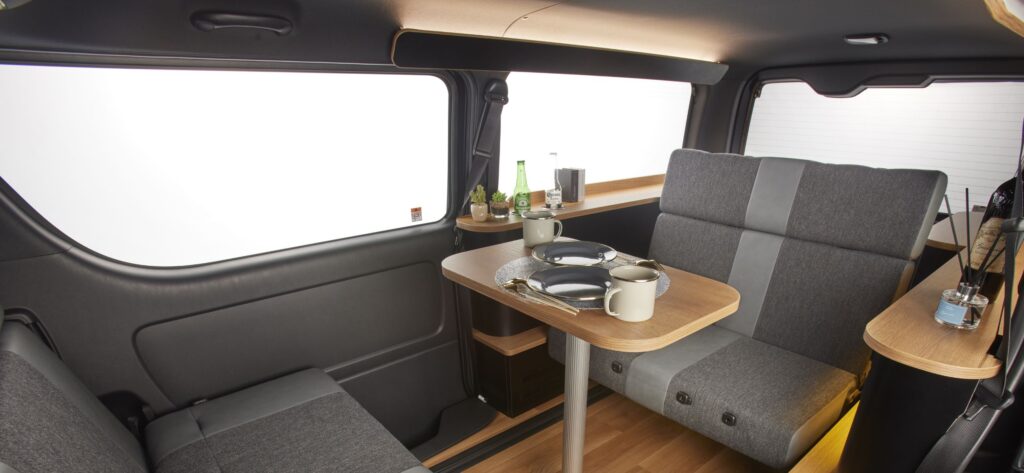 キャンピングカーランド京都店との合同ブース「LAC/アネックス・デルタリンク・ファンルーチェ・トイファクトリー・フロットモビール・ミシマダイハツ・クラフト・キャンピングカー広島」ブースの出展車両は、