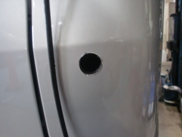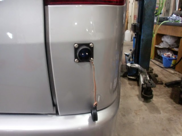 テールレンズを取り外し、後部右下あたりに外部電源差し込み口の取付