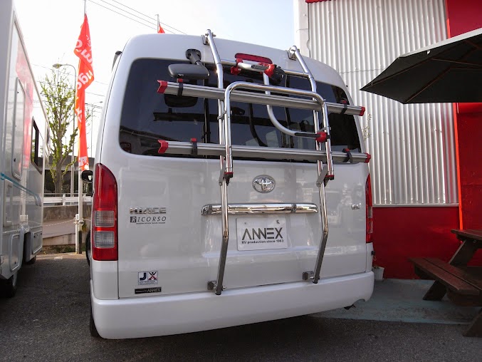 メインフレームは匠の技がいかされた日本製、ステンレスパイプを採用したNV200&ハイエースミドルルーフ専用バイクキャリアです。