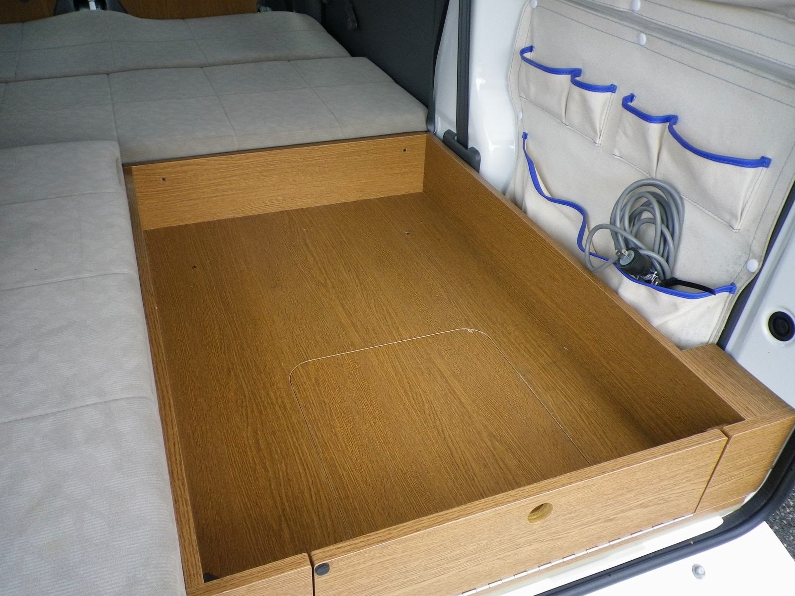 リアベッド下収納:ベッドにしても後部からアクセス可能