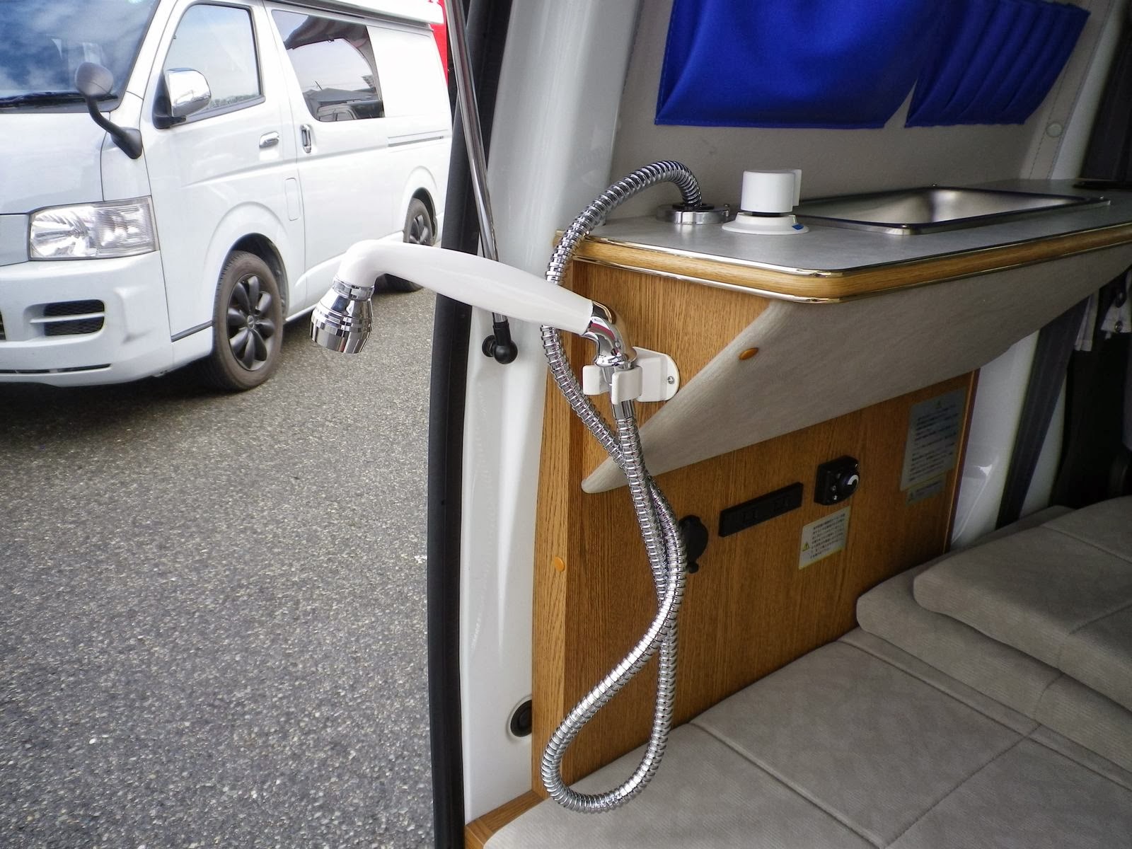 装備:サブバッテリー、FFヒーター、500Wインバーター、外部電源装置、シャワー蛇口、カーテン