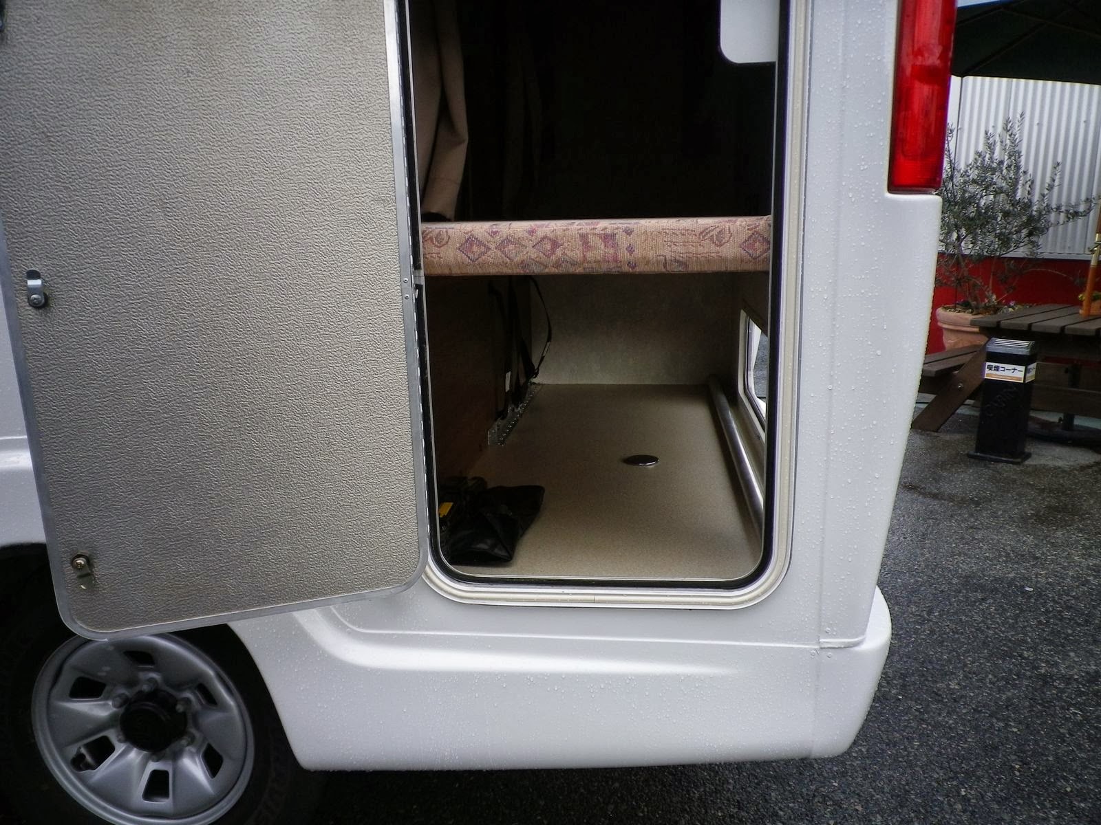 最後部常設2段ベッド下の収納スペース、左サイドとリアからアクセス可能
