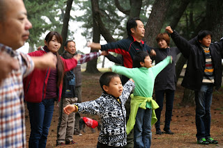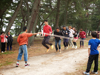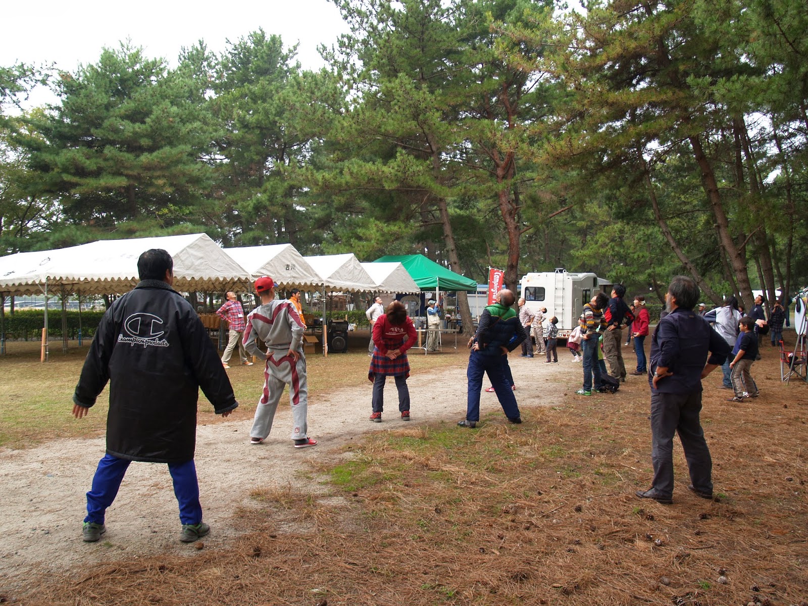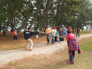 ラジオ体操でウォーミングアップし、引き続き、大なわとび大会スタート!