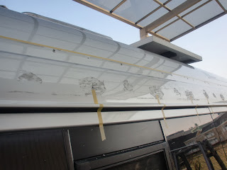 今回の作業はサイドオーニングの取付ではなく、交換。