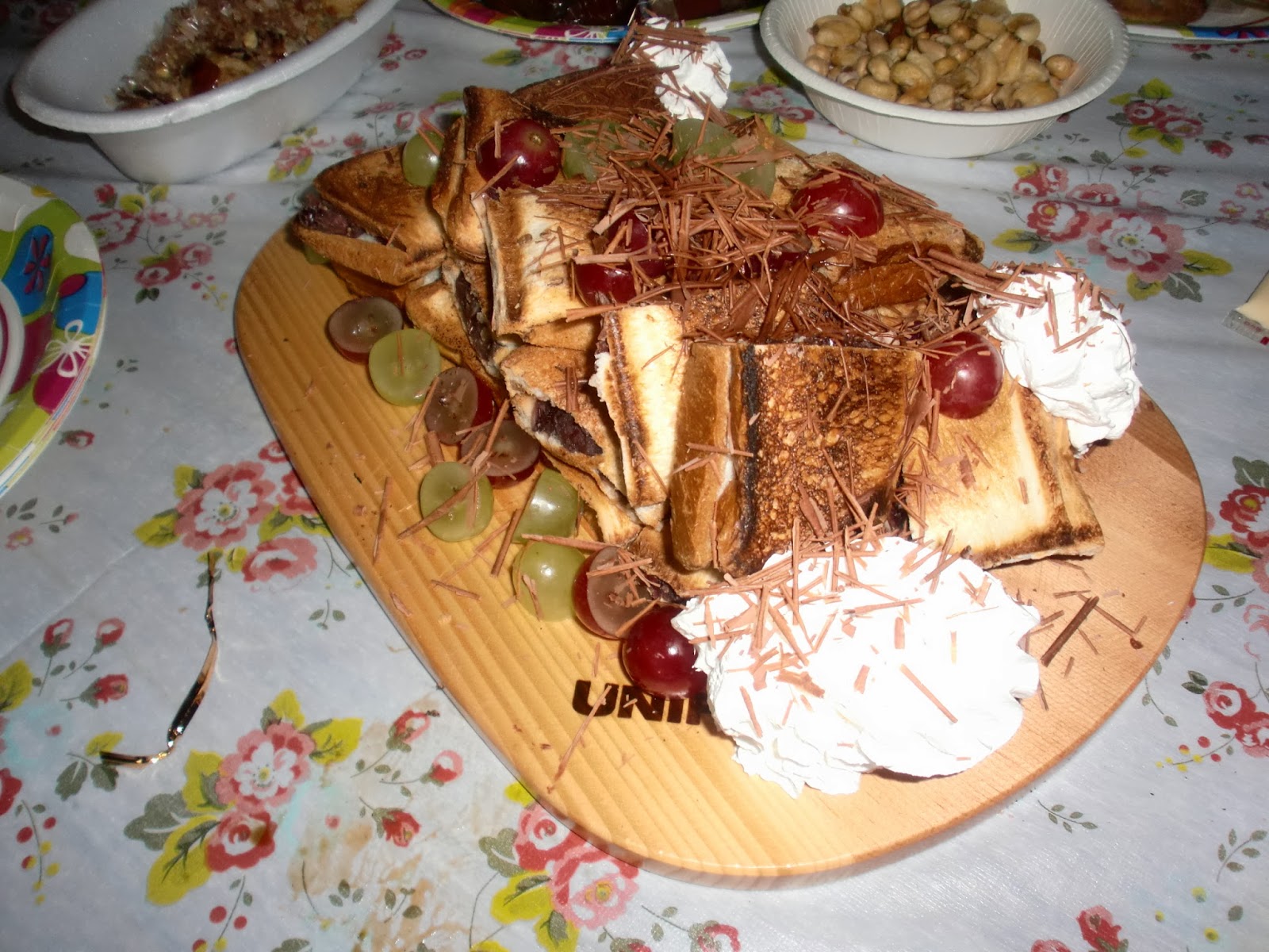 みなさんに持参していただいた手作り料理、手作りスイーツ、果物やお菓子などで