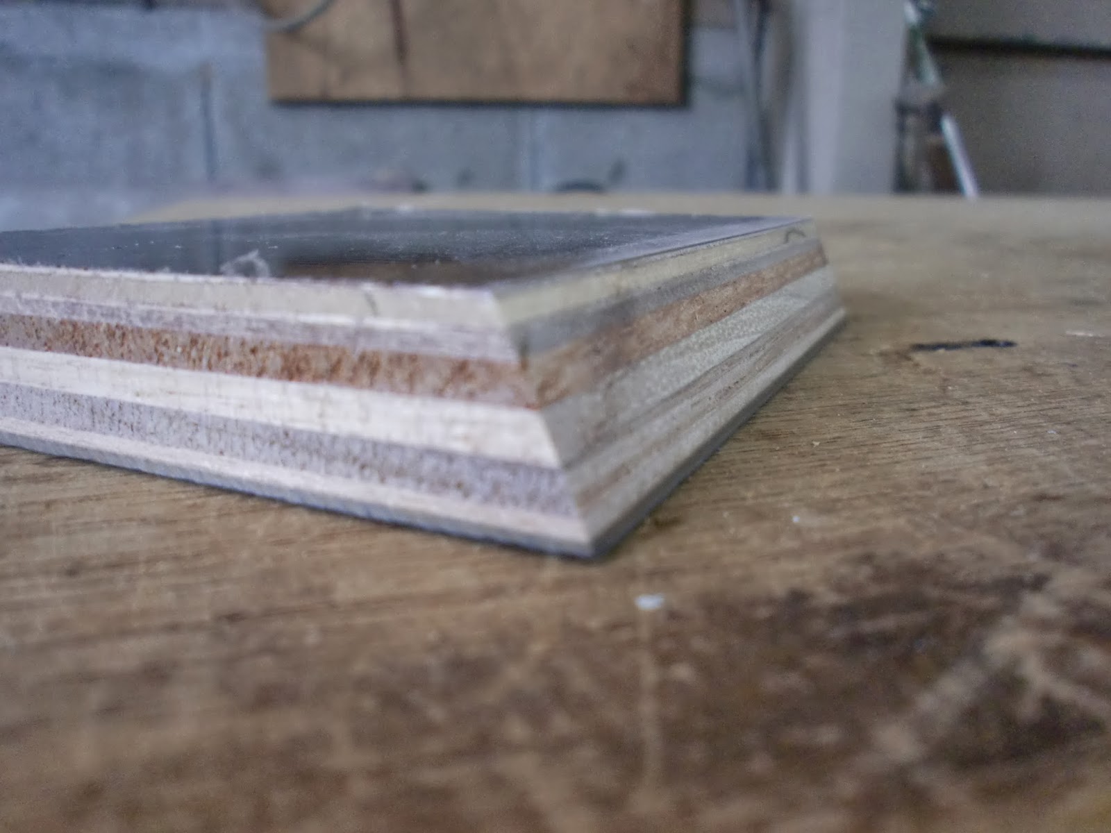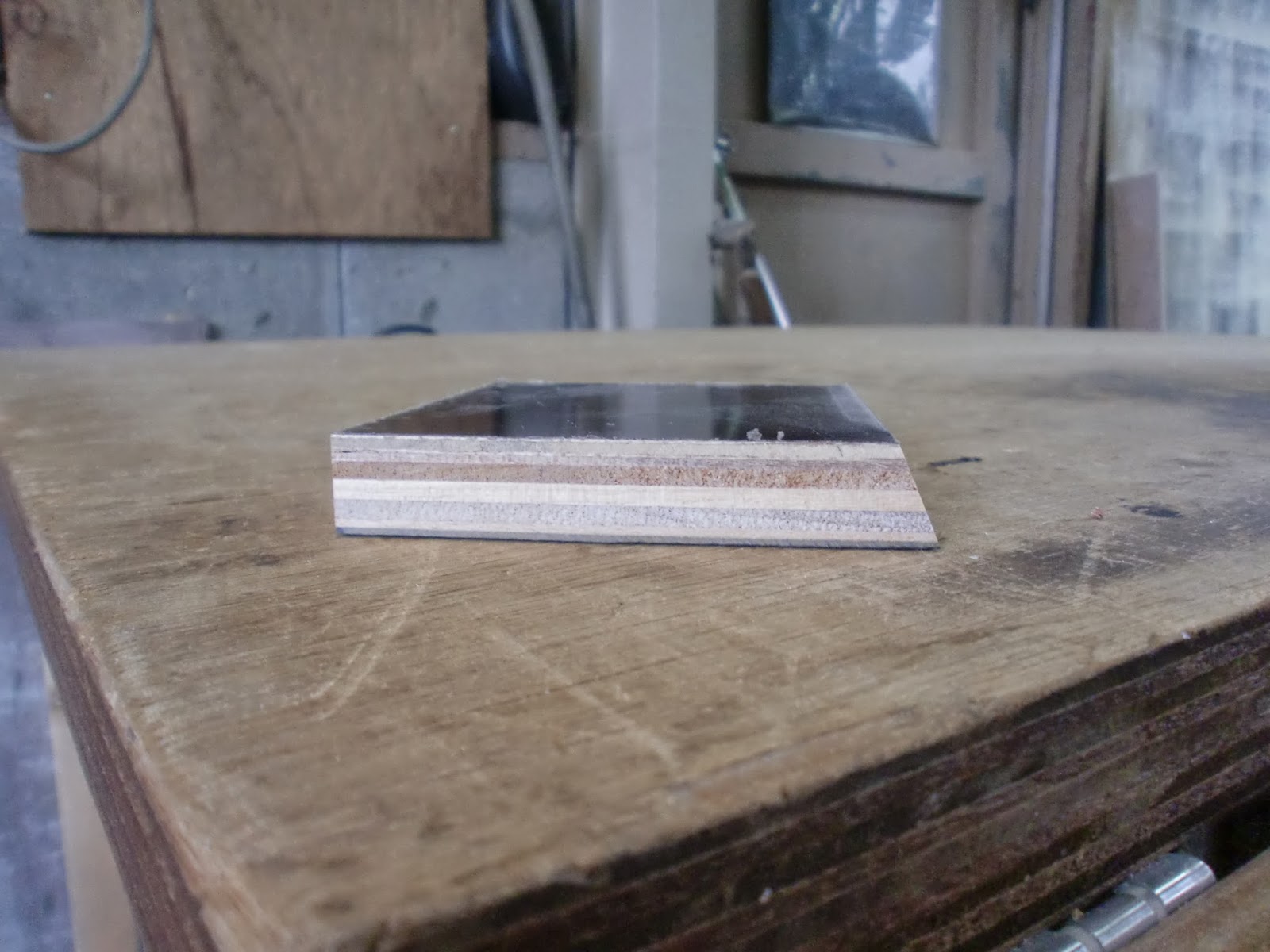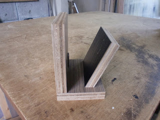 垂直にカットした板と斜めにカットした板を固定してみるとこんな感じに。