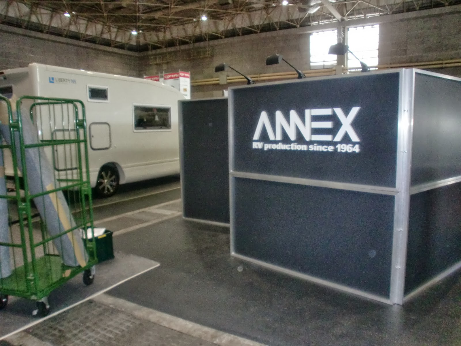 ANNEXブースにはおなじみの看板を組立。