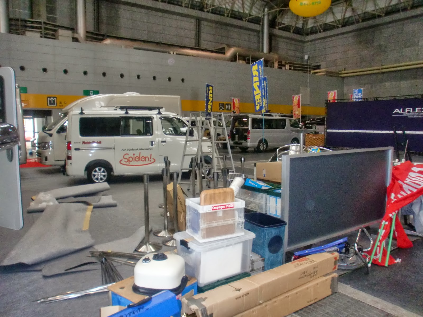 皆様が来られる頃には、きれいに設営されていますが、搬入当日はバタバタ。
