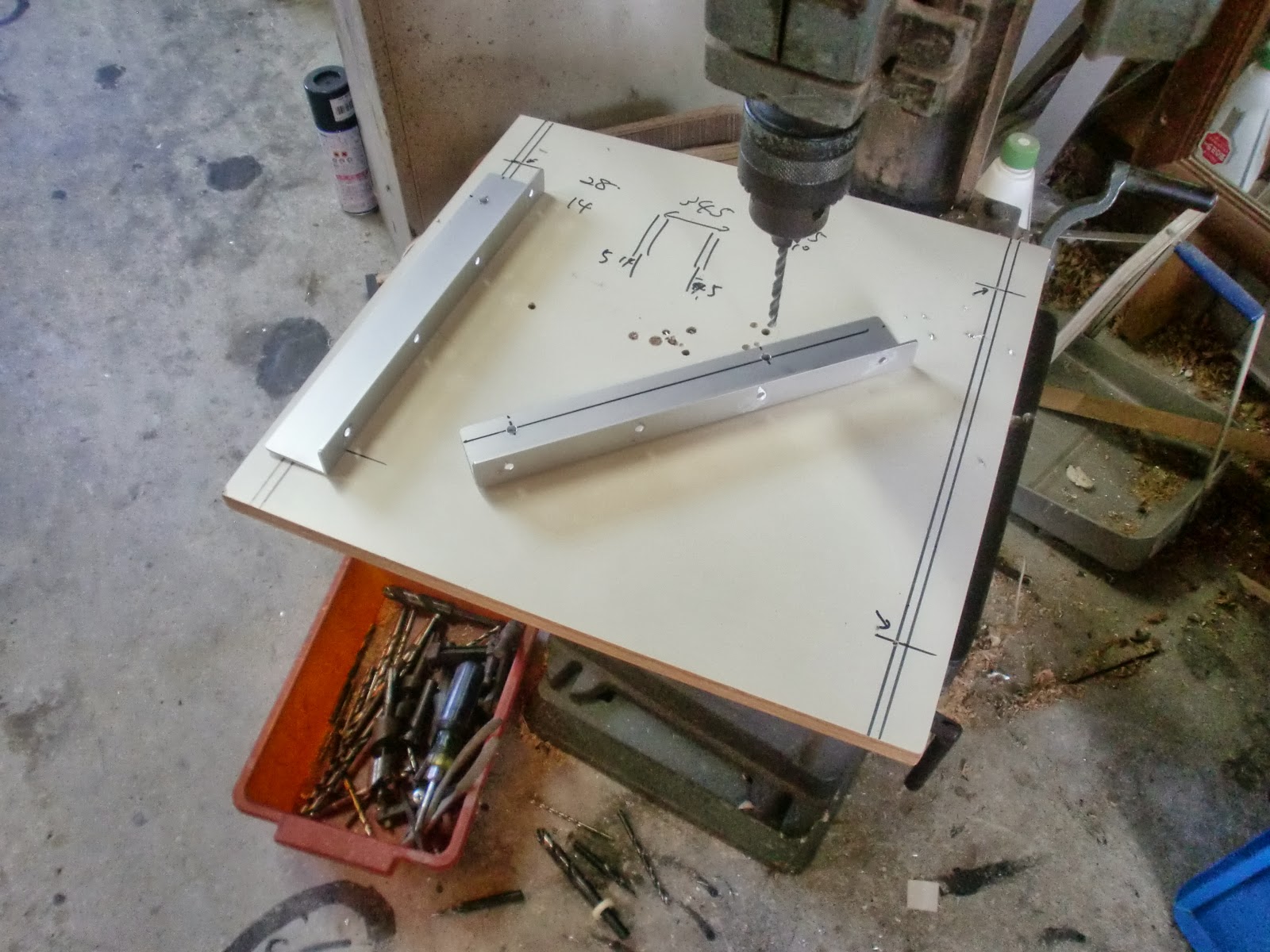 次に電子レンジを固定する用の、L型アルミレールを加工していきます。