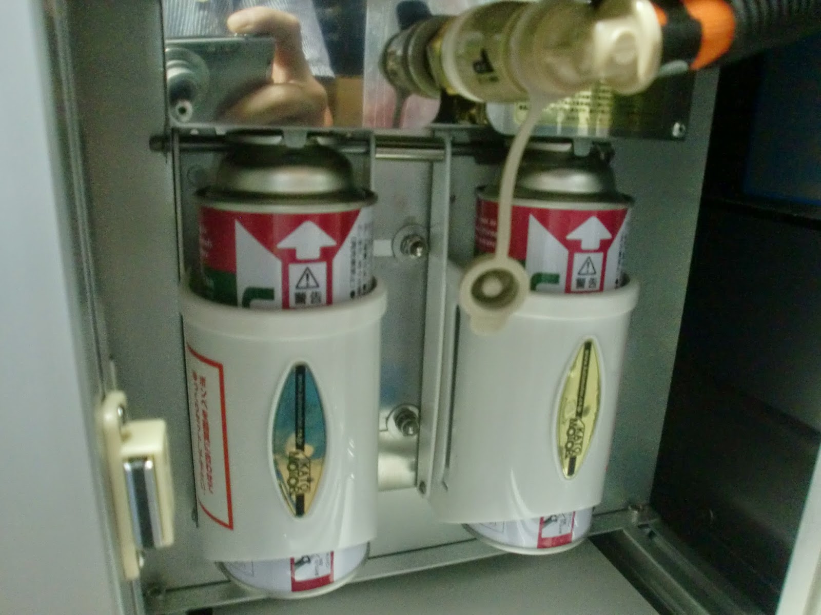 室内にはシンクとコンロが設置されており、カセットガスはリヤゲートを開けた所から