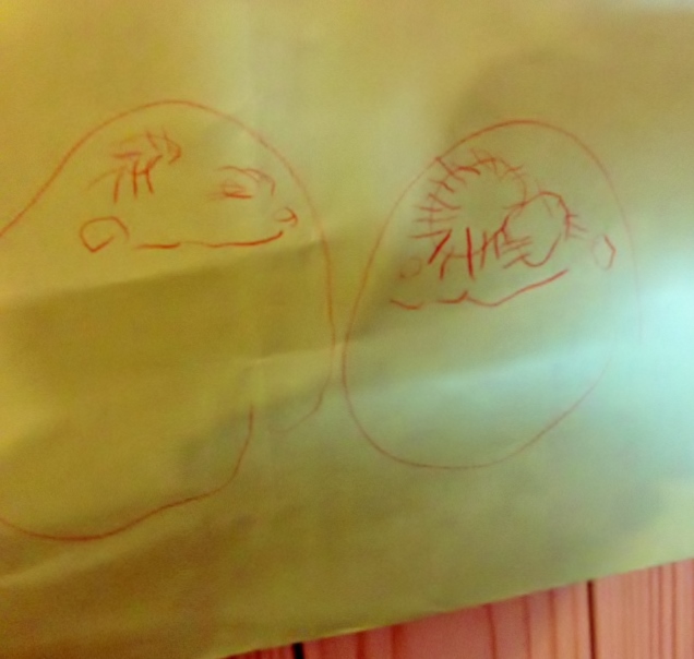 先日、うちの4才なりたての娘がお絵かきをしてました。
