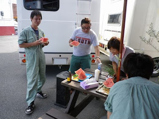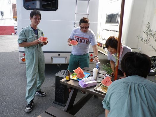 昨日はお客様に頂いたスイカを食べました。