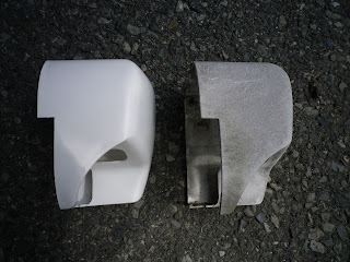 こちらは右側カバー、新品と装着されていたものを並べてみました。