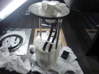 これは、燃料ポンプと燃料フィルター。燃料タンクからこのポンプを動かして、ガソリンを送っていきます。
