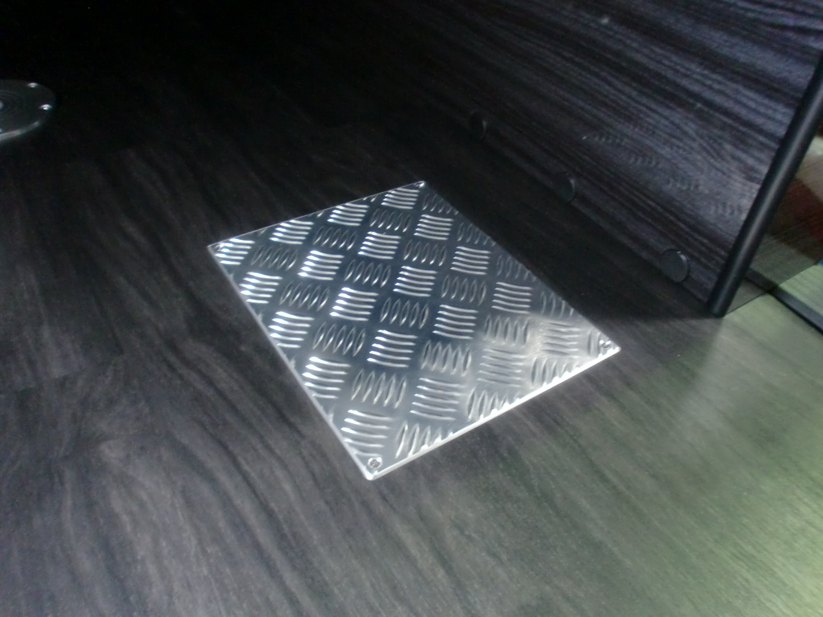 この縞板の下には燃料タンクがあり、FFヒーター取付け時やメンテナンス時、これを取り外して作業出来る様にしている物です。