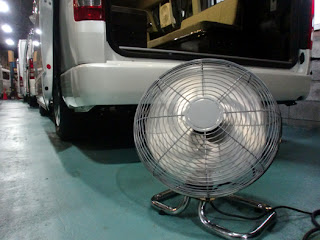 屋内展示場とはいえ、冷房が効いていませんので、暑いです。