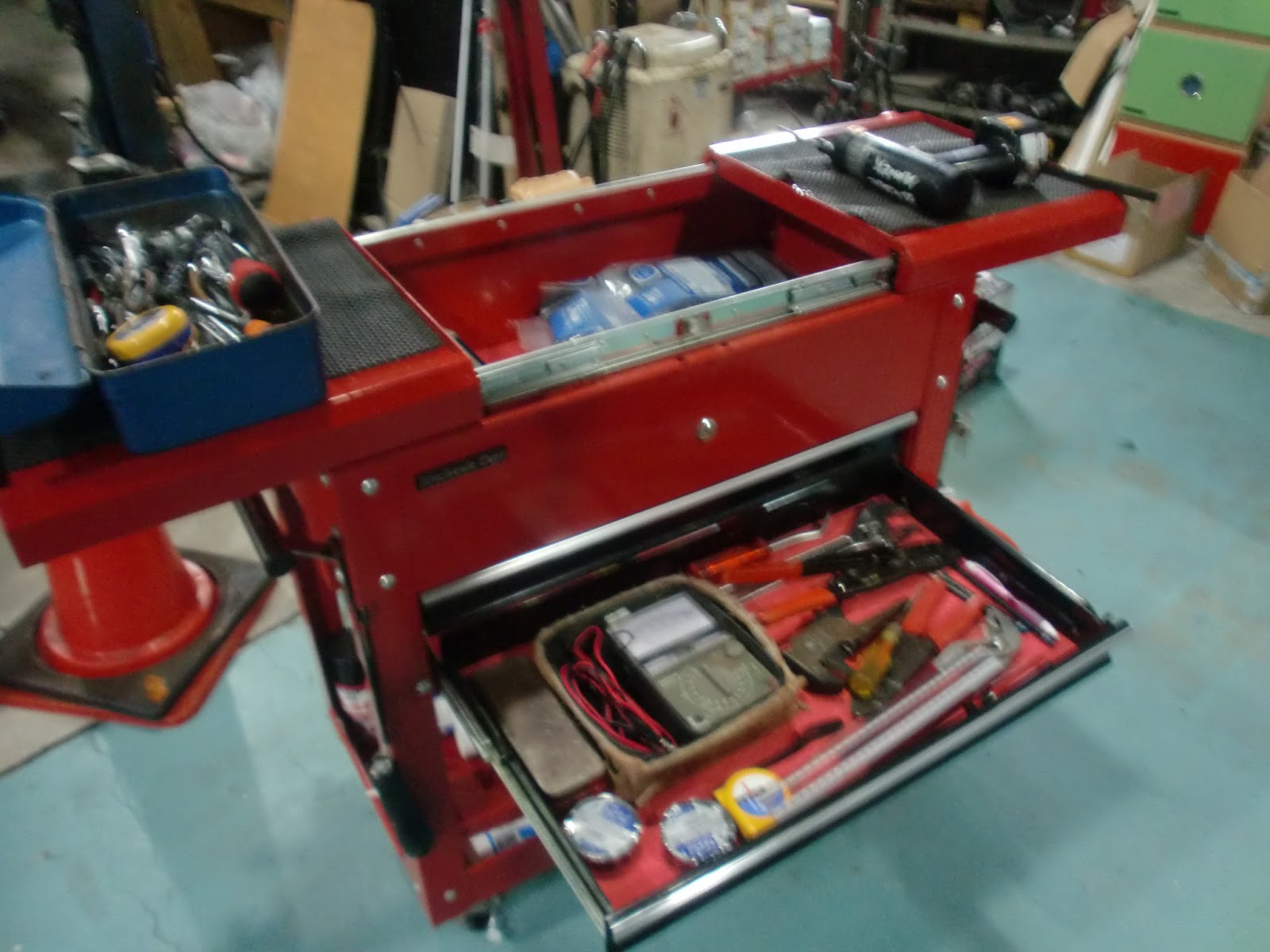 実のところ、うちのスタッフ阪本が〇ストコで見つけて来て、社長にお勧めした移動式工具入れでもあります。