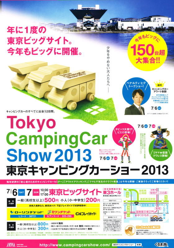 今週末7月6日(土)・7日(日)東京ビッグサイトにて「東京キャンピングカーショー2013」が開催されます。