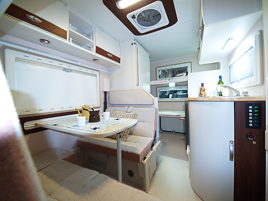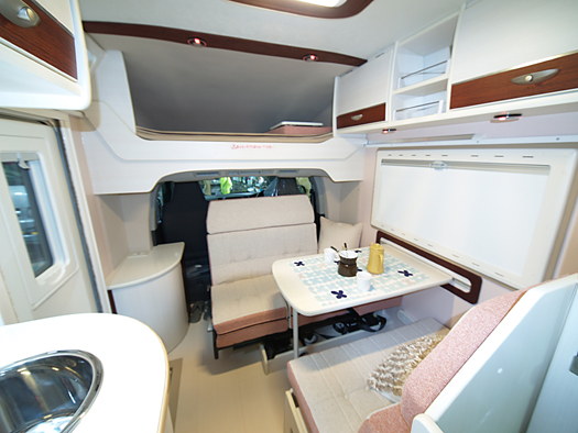 バンクベッド部分の張り出しがないスマートなシェルデザインが人気のキャンピングカーです。