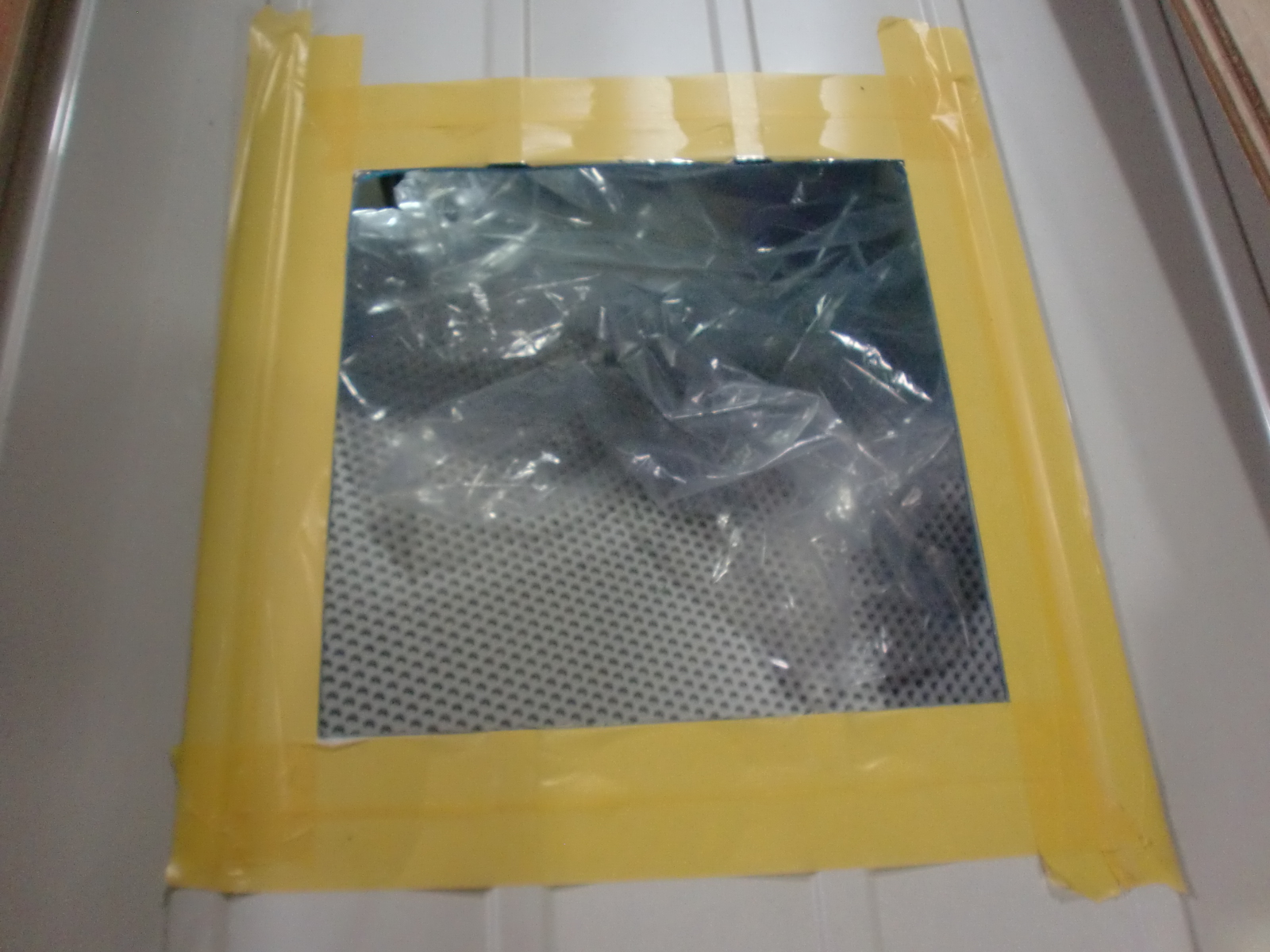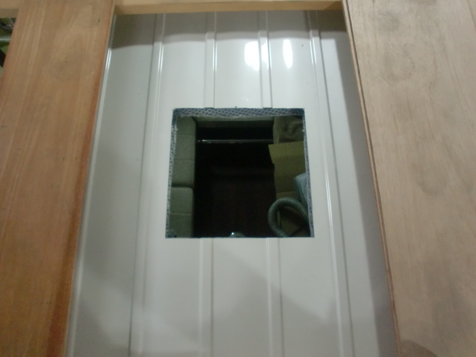 室内側から位置を決め、カットする大きさにしるしを付けたら四隅に穴を開けていきます。