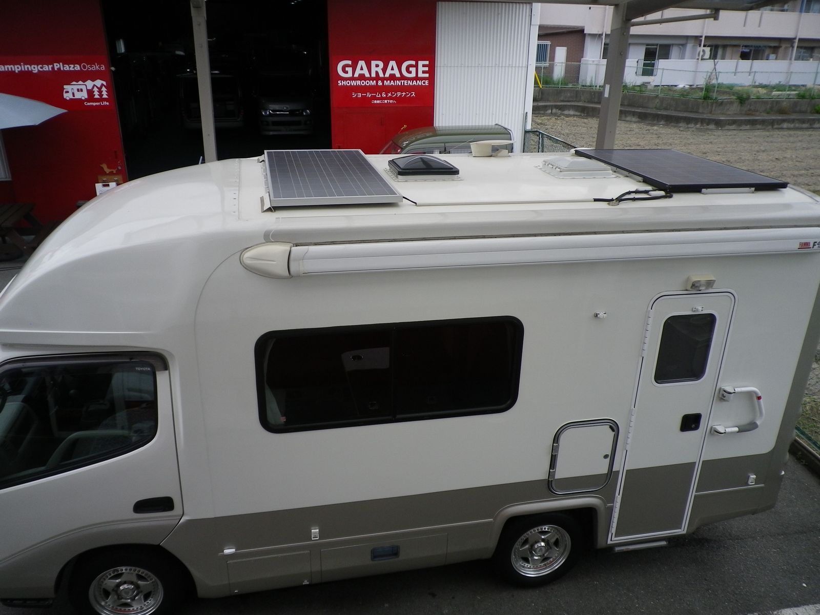 キャンピングカープラザ大阪にて販売中の中古車にもソーラーパネルが搭載された車両があります。