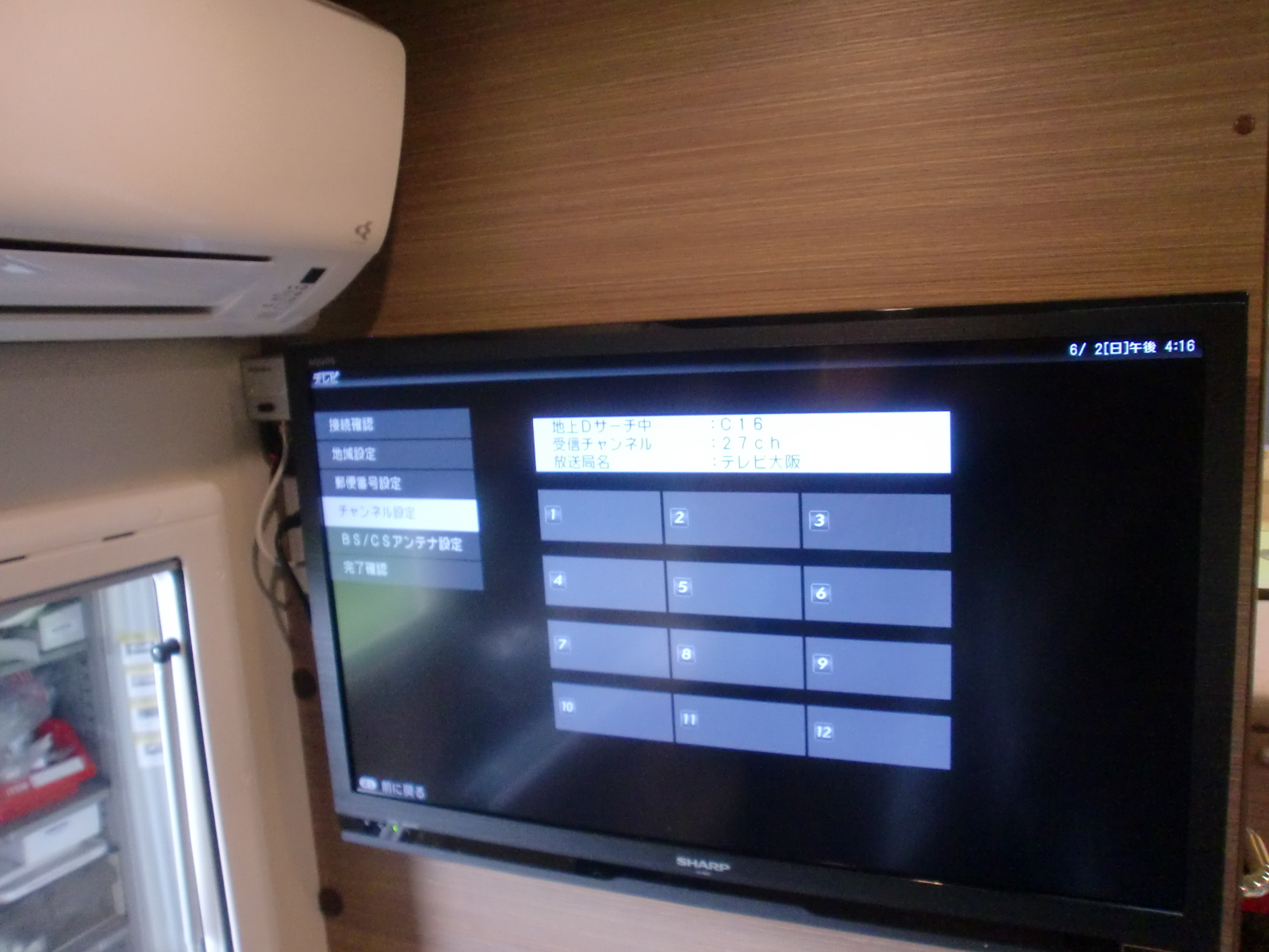次の作業はTVの取付け。しかも32型と壁の真ん中が隠れてしまう程の大きなTVです