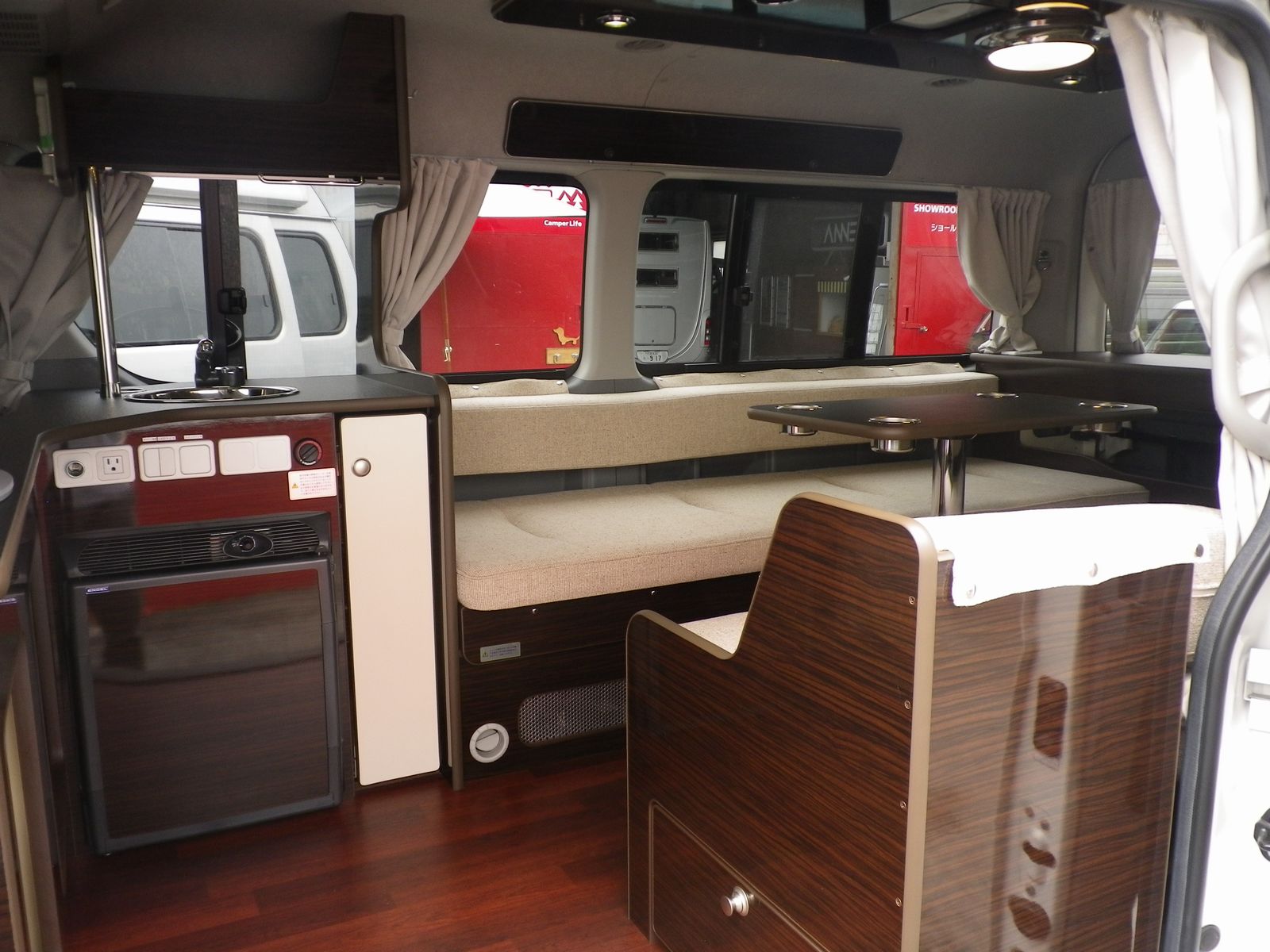 装備:FFヒーター、40リットル冷蔵庫、1000Wインバーター、液晶テレビ、SDナビ、バックカメラ、ETC