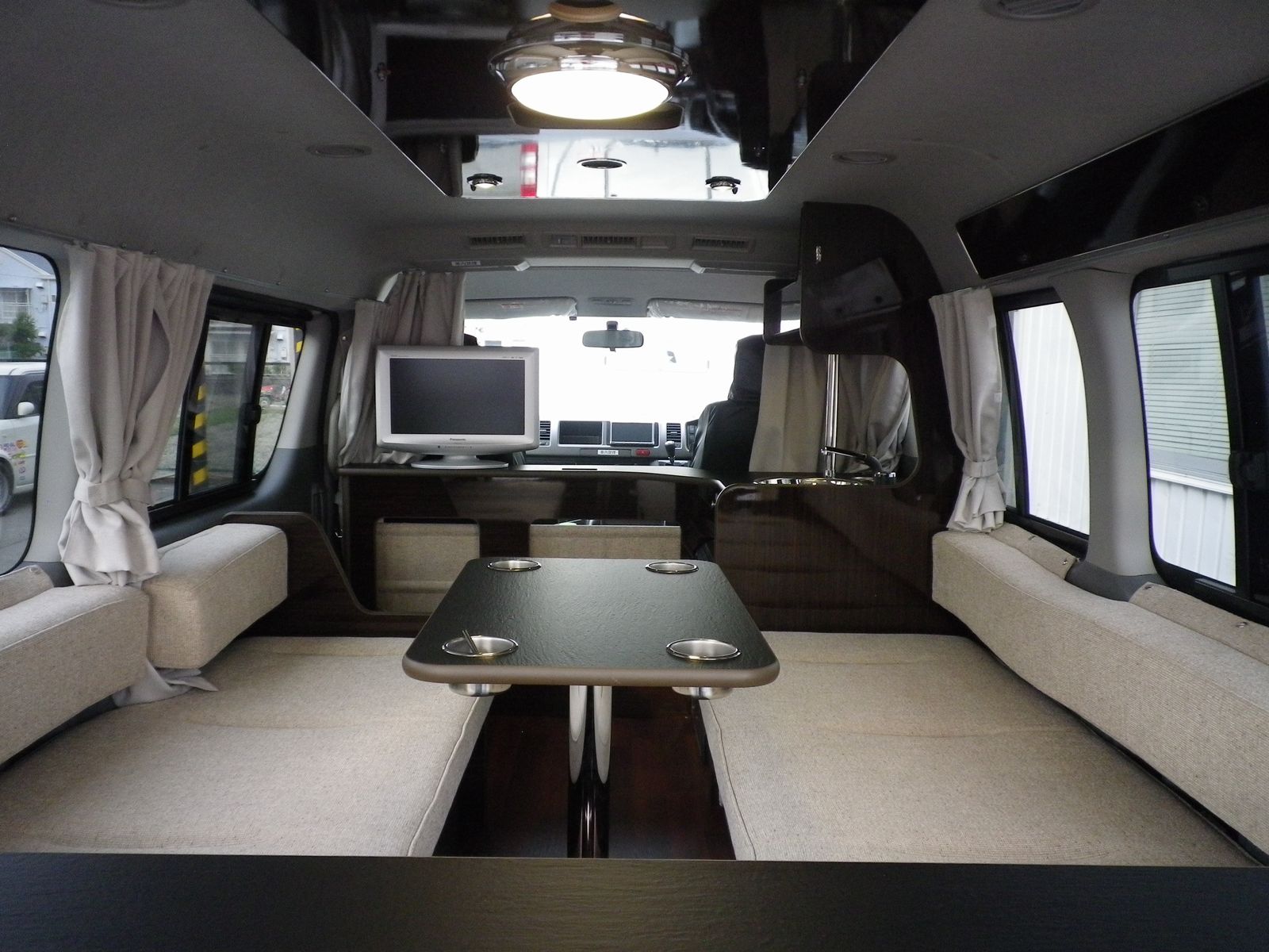 装備:FFヒーター、40リットル冷蔵庫、サイドオーニング、組み立て式2段ベッド、HDDナビゲーションなど