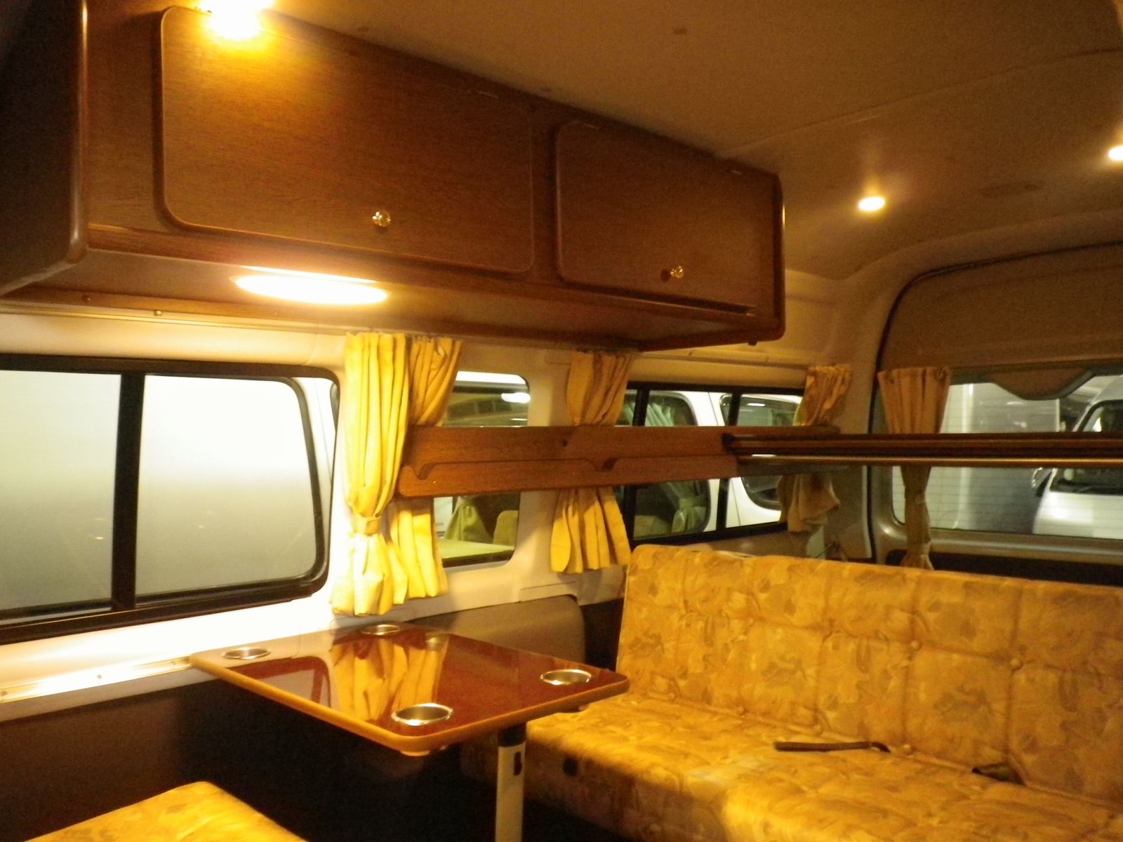 装備:サイドオーニング、サブバッテリー、バタフライシート+フロア埋め込みスライドレール、