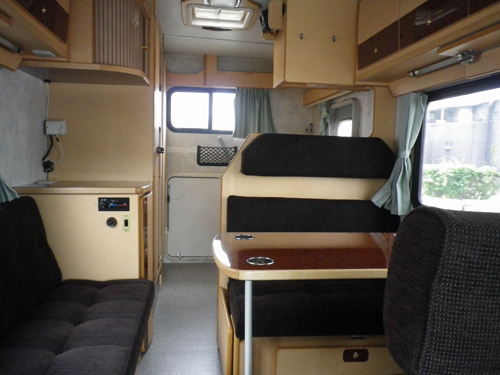 過去にキャンピングカープラザ大阪にてリフォームした車両で、最後部は2段ベッドではなく、収納庫になっています。