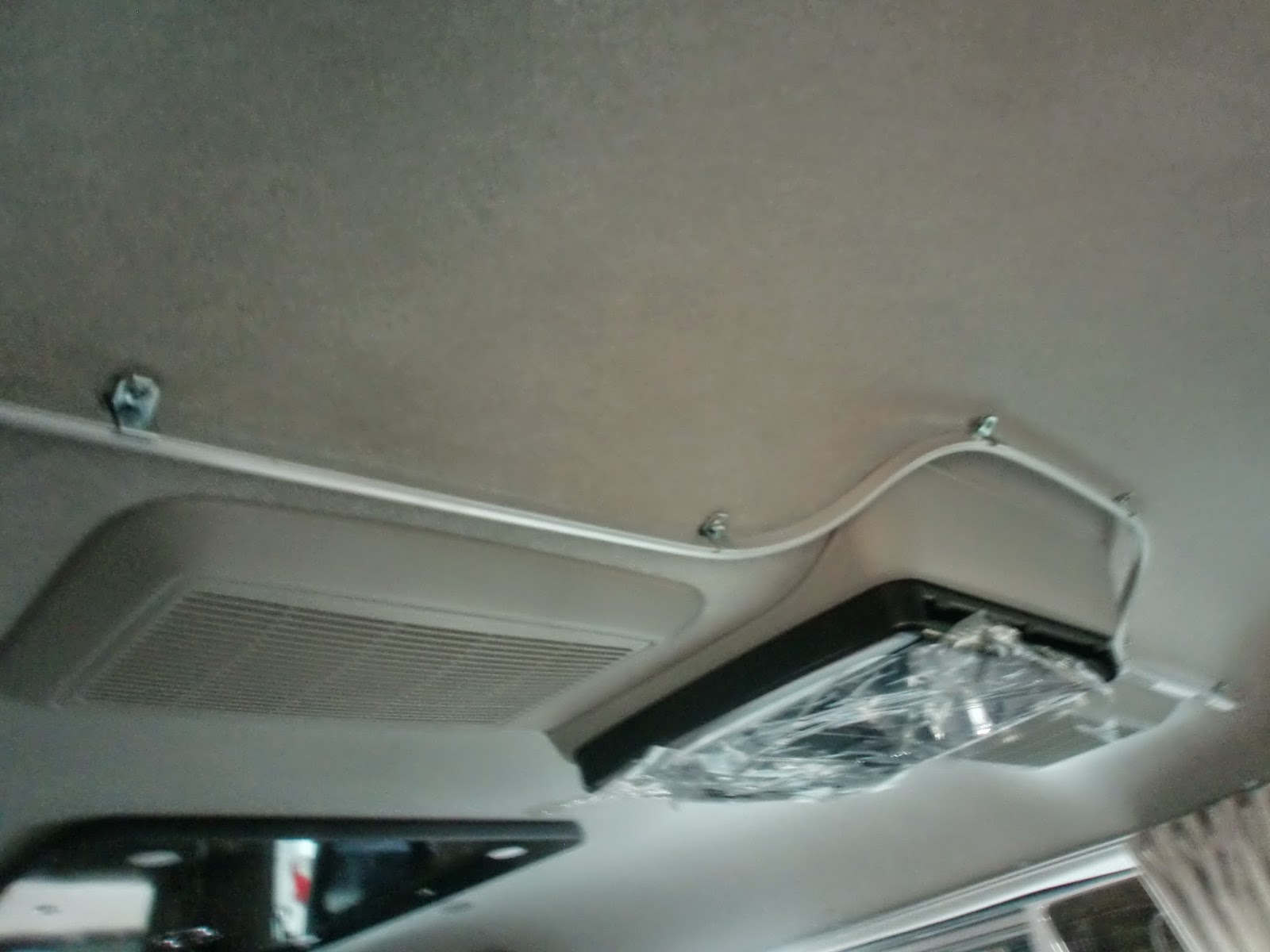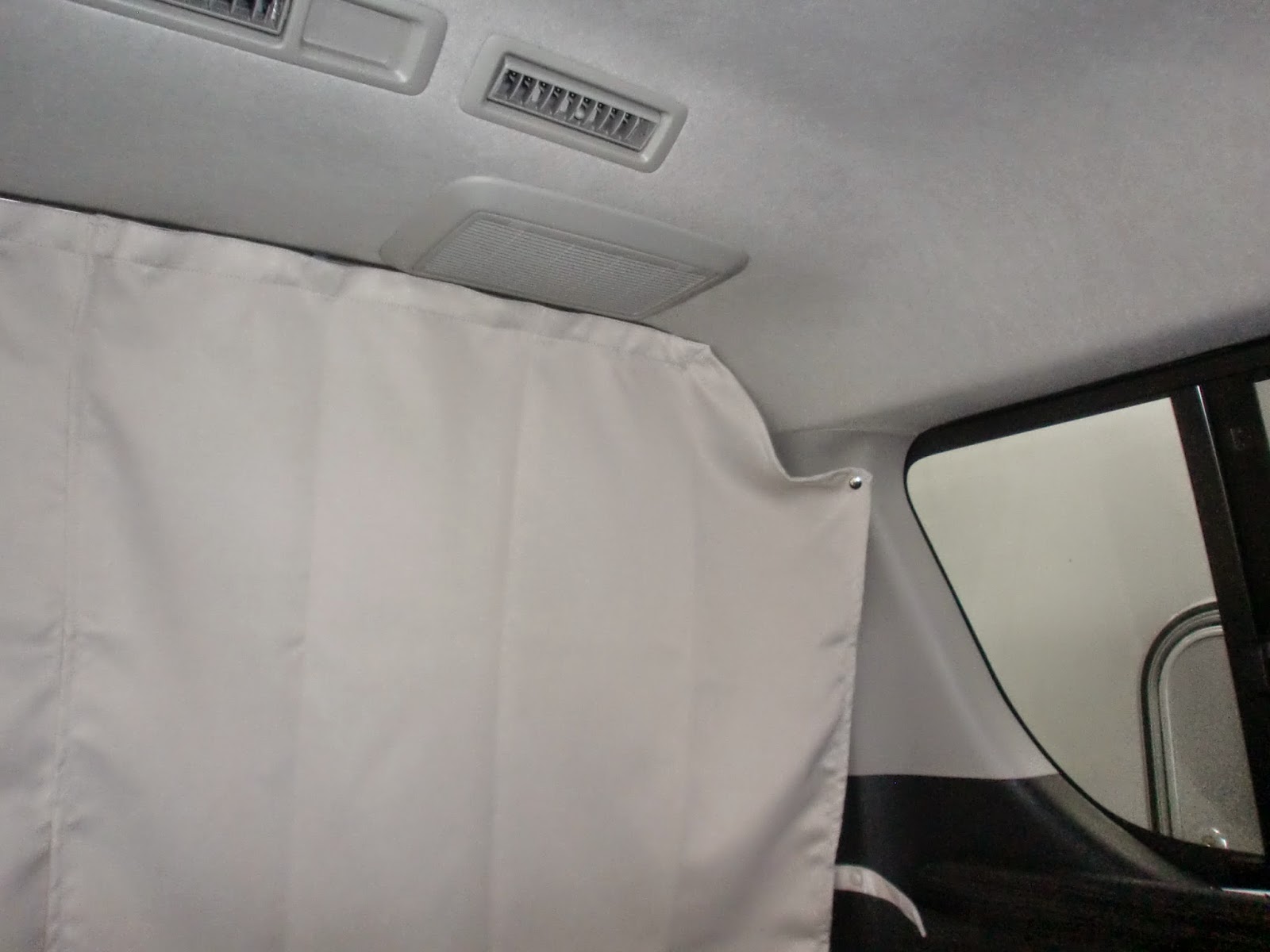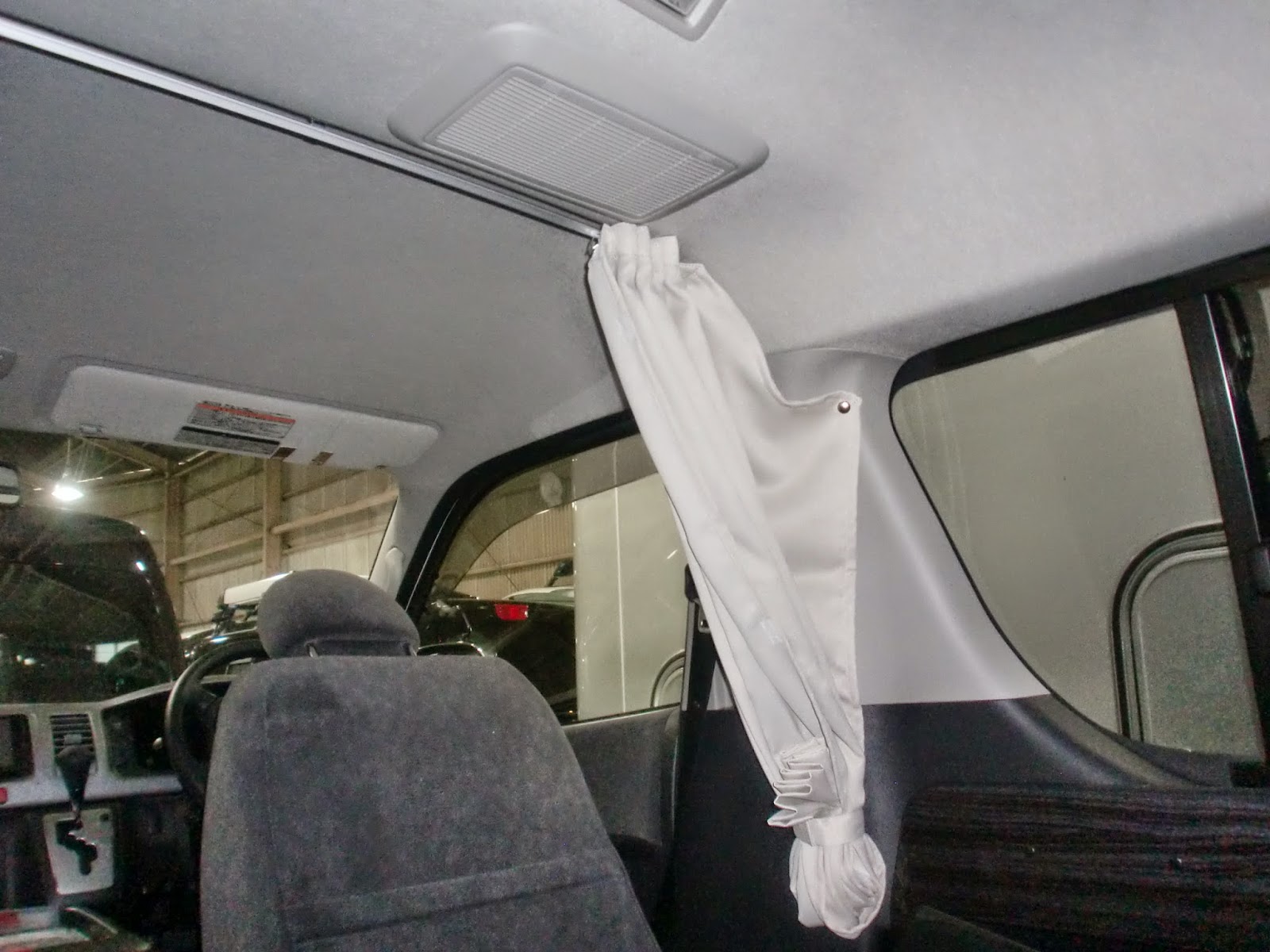 こちらの写真は、ハイエースに取り付けされた間仕切りカーテンレールです。