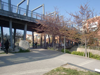 「ヴィソラふれあいパーク」北側の「かやのさくら橋」を渡り、