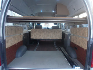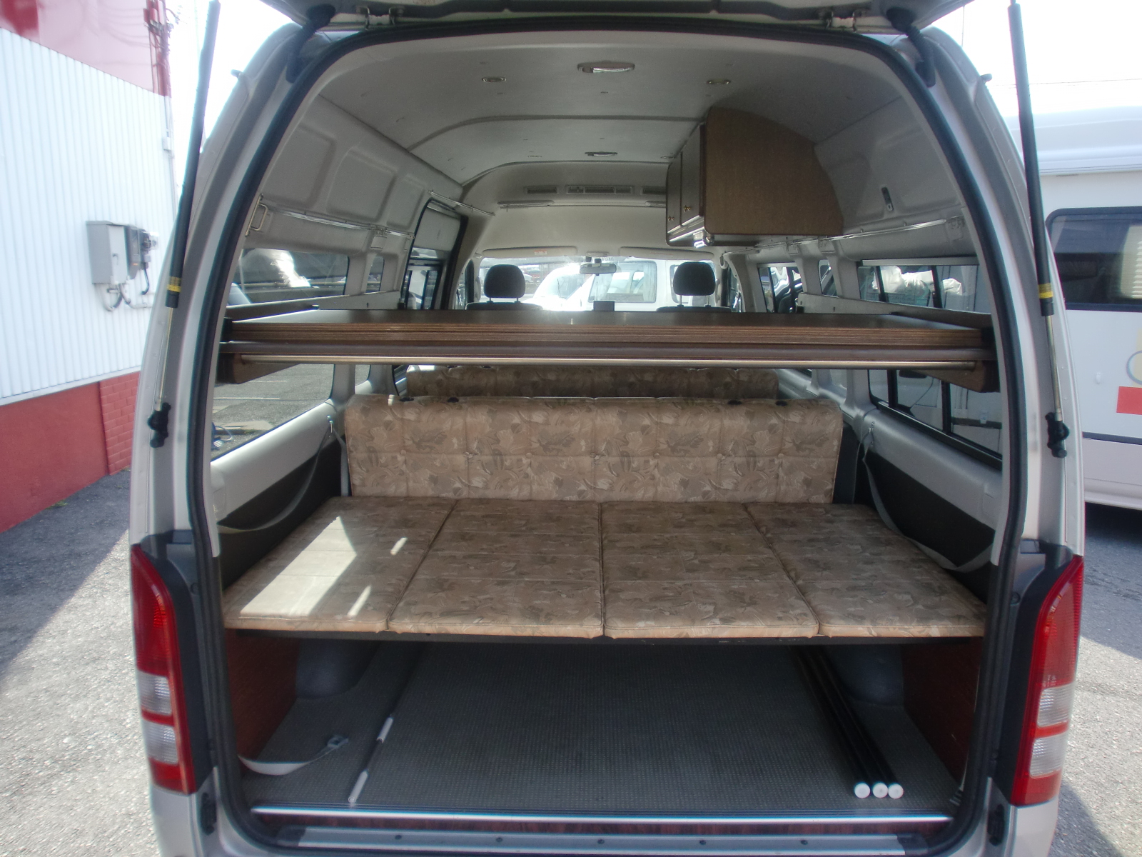 装備:サイドオーニング、サブバッテリー、バタフライシート+フロア埋め込みスライドレール、