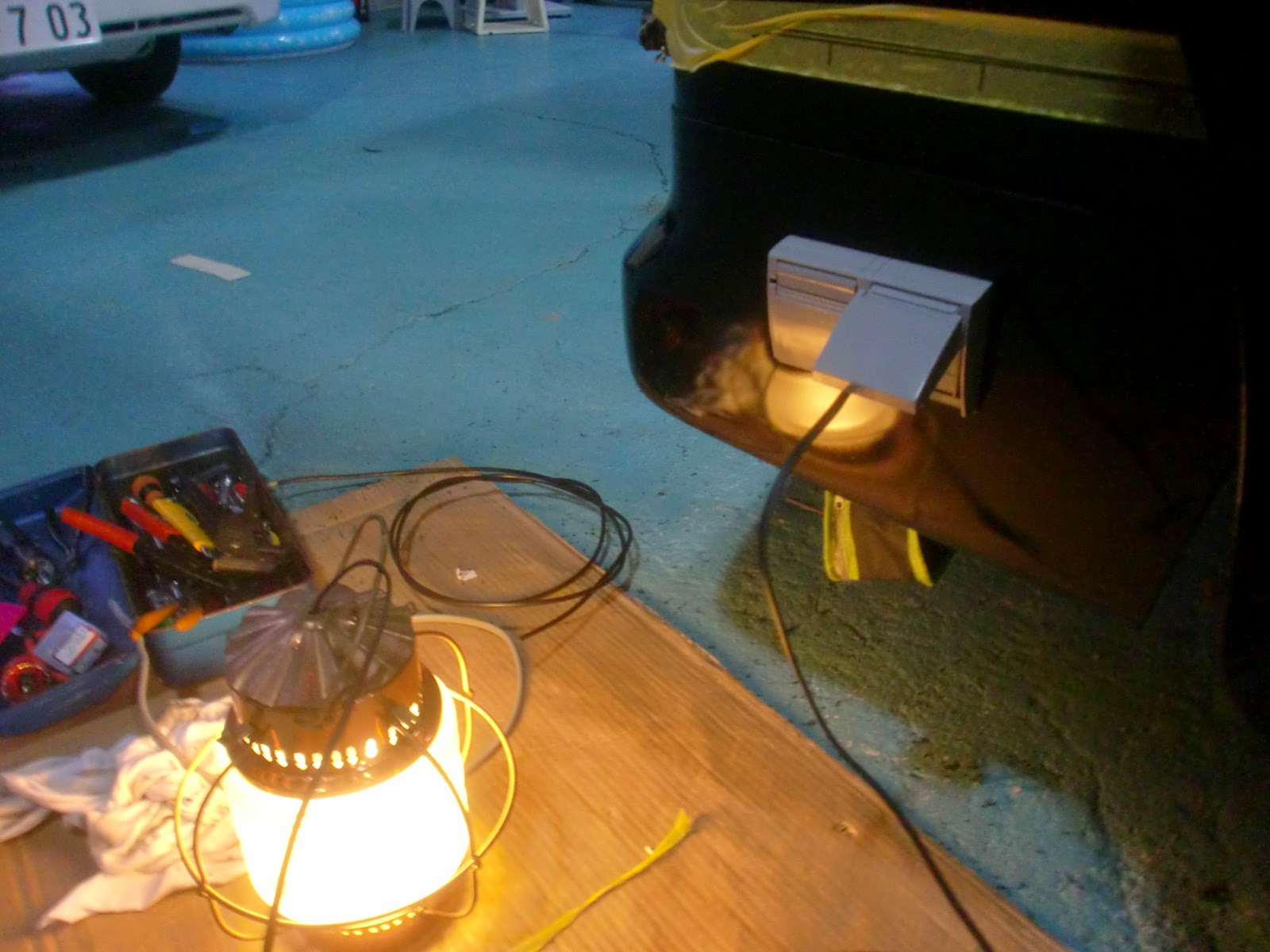 外側で照明を繋ぎ、通電テスト。