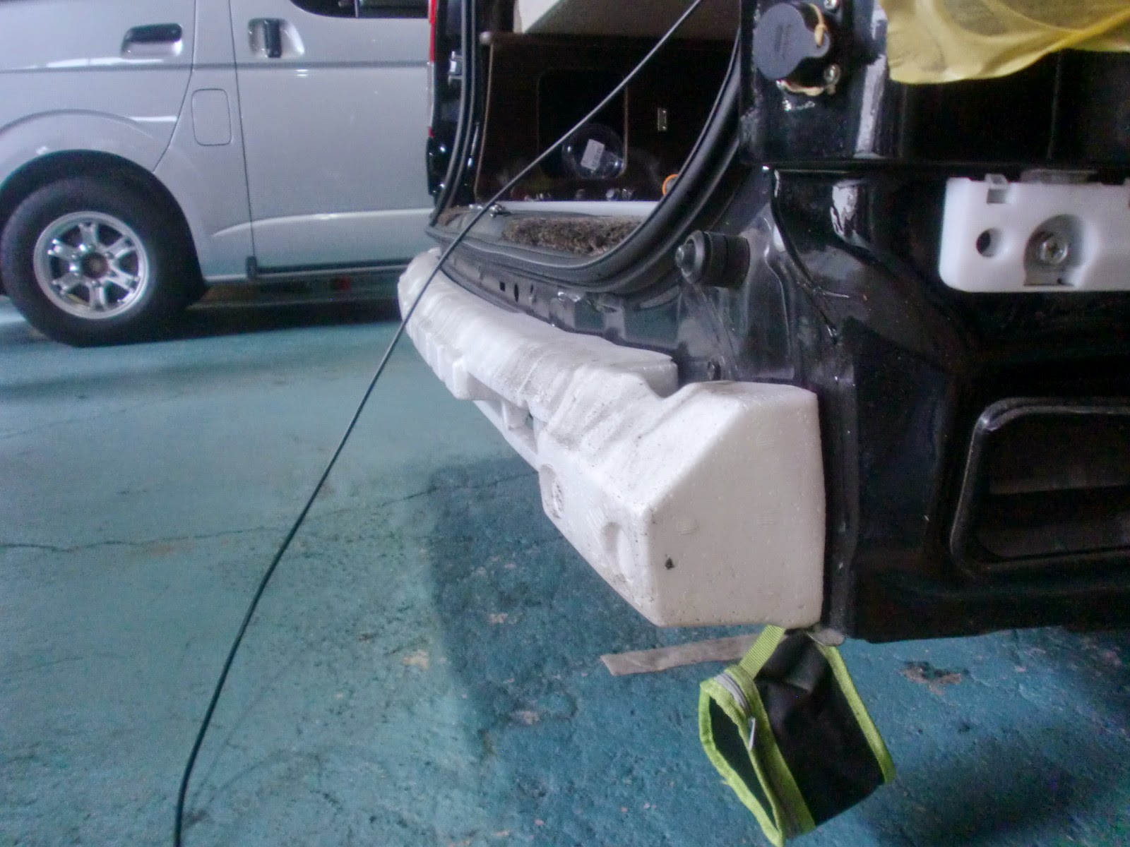 リヤバンパーを外した方が作業しやすいので思い切って、取り外し。
