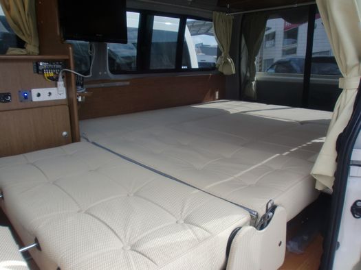 ベッドスペースは2250×1680~1000(mm)、1800×1560(mm)確保されているため就寝3名可能